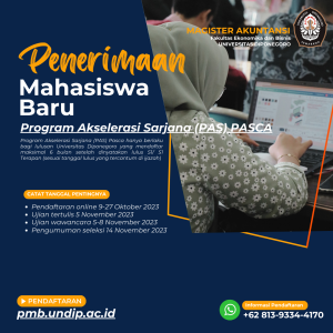 The Master of Accounting program is accepting new student registrations through the Postgraduate Acceleration Program (PAS). PAS is exclusively available to Diponegoro University graduates who
