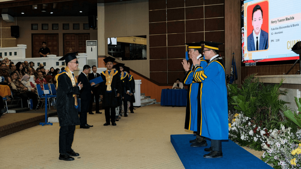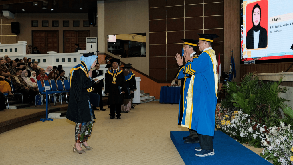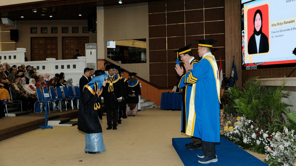 Prosesi pemberian gelar dimulai dengan penuh hikmat, di mana setiap mahasiswa dipanggil satu per satu untuk menerima ijazah dan tanda penghargaan dari Rektor. Sorakan dan tepuk tangan meriah menggema di seluruh aula, mencerminkan kegembiraan dan kebanggaan keluarga dan teman-teman yang hadir.
